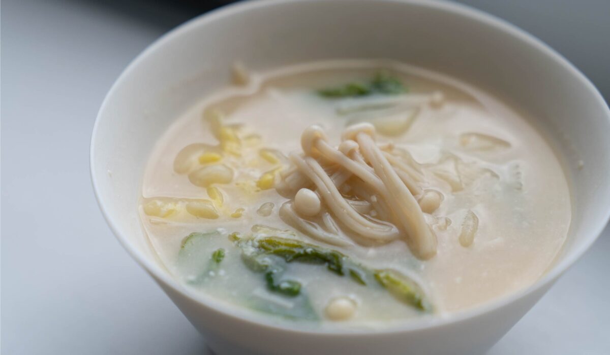 1. 野菜をカットします。白菜は3cm×3cmの大きさにカット、長ネギは1cm程度の斜め切りに、えのきはいしずきを落とし、半分にカットしてほぐしておきます。生姜はスライスしておきます。