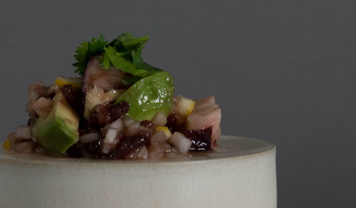 1. 食材をカットします。玉ねぎはみじん切りに、アボカゴ・タコはひと口サイズにカットします。