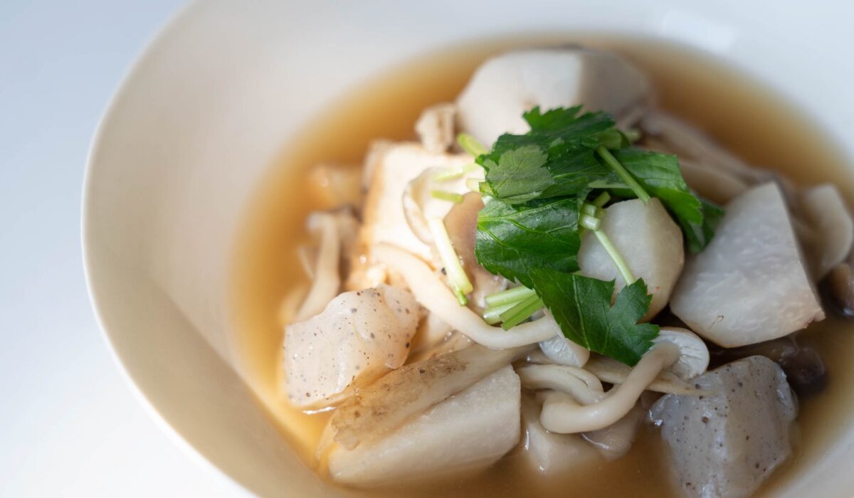 3. お鍋に水を加えて、里芋・ごぼう・こんにゃくから煮ていきます。沸騰しアクが出てきたら丁寧に取り除きます。その後、残りの材料を加えて、くつくつ中弱火で煮ていきます。