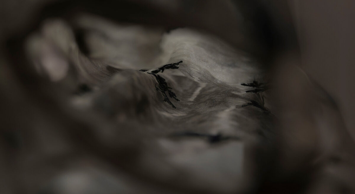 今年のAWコレクションのメインアイテムは、そんな身近なインスピレーションが形になったデザインのひとつ。ゆらぐような柄に小花が刺繍されたシアー生地。